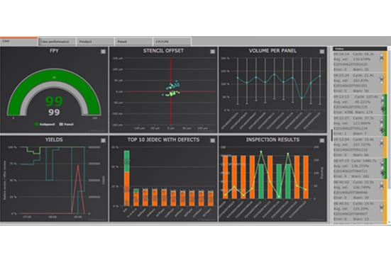 Pour davantage améliorer votre contrôle sur le processus, la série PI procède automatiquement au regroupement des pads en fonction de leur ratio d'ouverture AAR (Aperture Area Ratio). Cela vous permet d'améliorer continuellement votre processus et de définir des tolérances indépendantes des produits. Il fournit également des images de revue 3D extra-larges pour des diagnostics facilités. Que vous utilisiez la fonction « closed-loop » intégrée pour améliorer les rendements ou que vous suiviez votre process en temps réel avec MYPro Live, la série PI vous donne un contrôle total sur le process d'impression afin d'assurer de meilleurs produits et des rendements plus élevés pour chaque lot. Pour suivre vos performances au fil du temps, MYPro Analyze vous aide à rendre compte et à suivre votre progression en générant des informations utiles et des analyses de tendances.