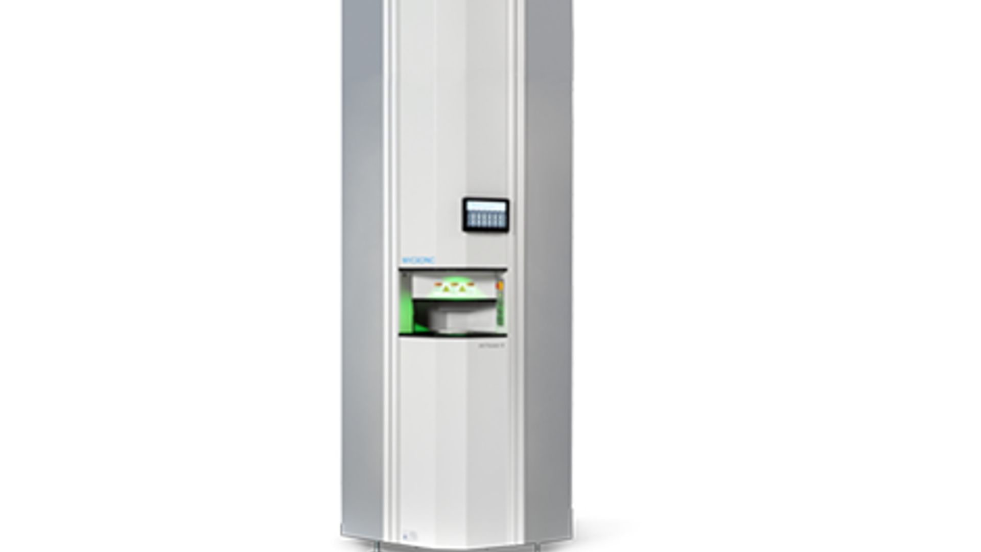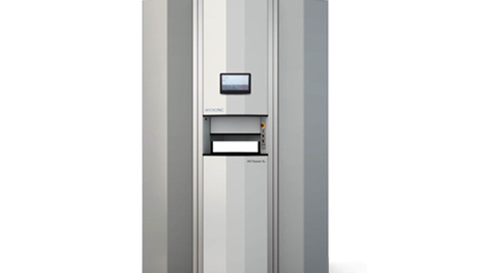 A modern, near-production storage system. The MYTower is an automated, highly flexible and expandable buffer storage unit for electronic components, designed for deployment near the production line.