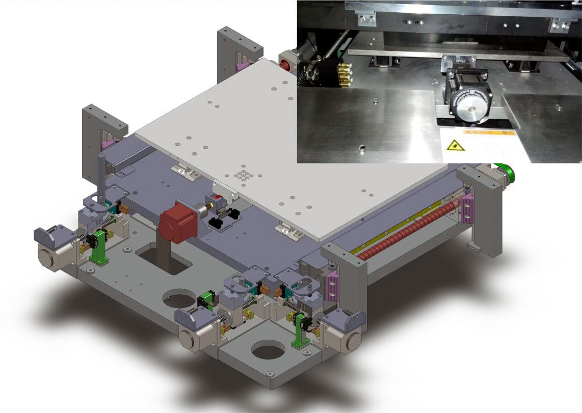 The lifting table improves movement rigidity through direct connection with the servo and ball screw. This enables precise control of the lifting position as well as controlled snap-off for improved printing yield.